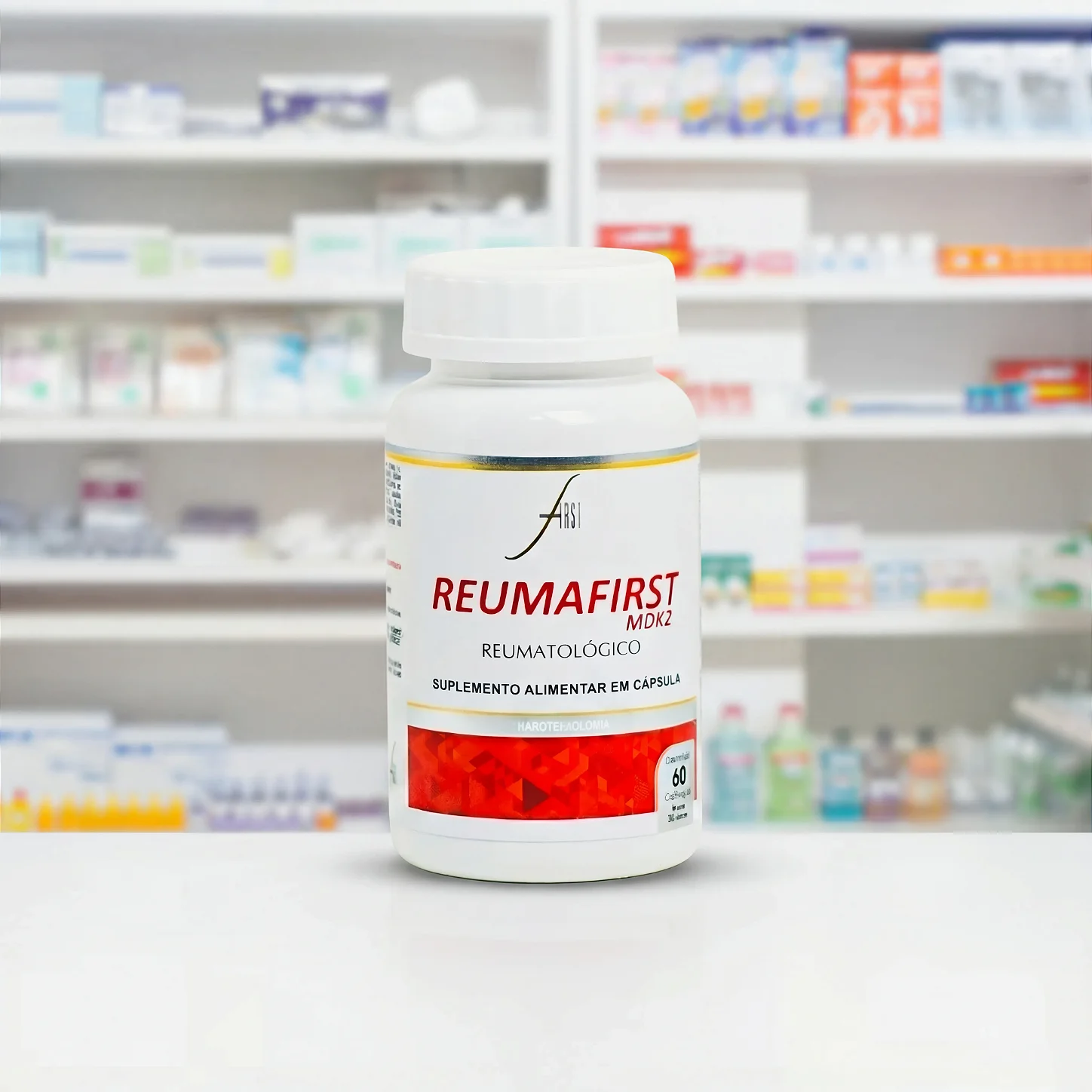 O ReumaFirst não é um medicamento. É um Suplemento Alimentar à base de Cloreto de Magnésio, Colágeno TIPO II, Vinagre de Maçã e Açafrão. Enriquecido com Vitaminas e Minerais; produzido com nanotecnologia da Linha Nutricional First (Sistema Estrutural). Composição da Cápsula: VCAPS - Cápsula Vegetal. Recomendação de USO: Ingerir 2 (duas) cápsulas, 1 (uma) vez ao dia, ou conforme orientação de um profissional de saúde. "CONSUMIR ESTE PRODUTO CONFORME A RECOMENDAÇÃO DE INGESTÃO DIÁRIA CONSTANTE NA EMBALAGEM". GESTANTES, NUTRIZES E CRIANÇAS ATÉ 3 (TRÊS) ANOS, SOMENTE CONSUMIR ESTE PRODUTO SOB ORIENTAÇÃO DE NUTRICIONISTA E/OU MÉDICO. * NÃO CONTÉM GLÚTEN